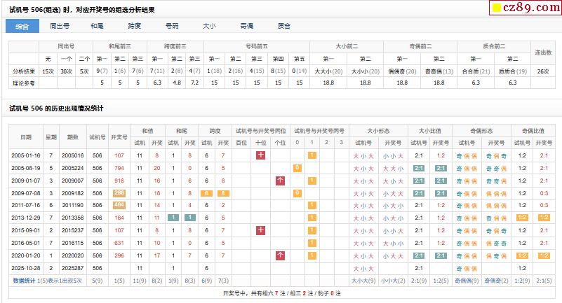287期福彩3D试机号506对应开奖号的组选分析结果-3d开机号试机号近30期开奖结果查询_排列五试机号开奖号查询彩经网_3d千禧试机号关注号金码号开机号_千禧排列三试机号查询-3D福彩