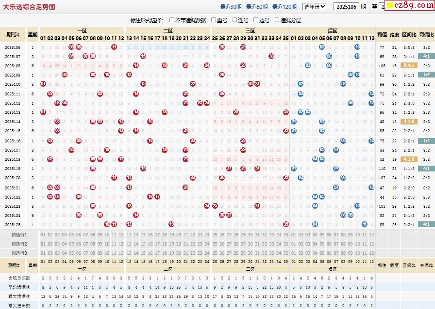 首页 > 大乐透预测 > 25年126期体彩大乐透近期走势图分析
